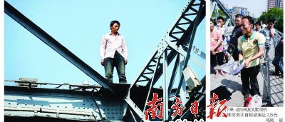 海珠橋,儼然成了“跳橋圣地”,F(xiàn)場幾位媒體同行揶揄說,全城應(yīng)該集體封殺海珠橋。是的,同樣是這個殘疾男人道出了大多數(shù)跳橋者的心聲,“只有這里,才能吸引社會的關(guān)注。”每一次海珠橋跳橋秀,全城媒體幾乎都要出動。