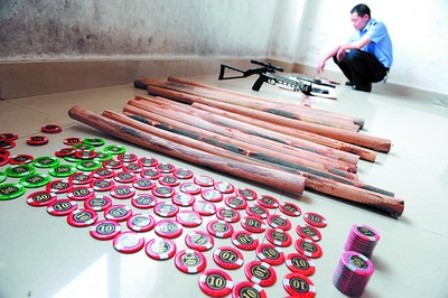 市公安局領(lǐng)導當即命令專案組,全力防止這場械斗的發(fā)生。專案組在當天下午迅速查明了案情。龍衛(wèi)軍綽號“龍霸草”,是一個“三進宮”的角色,2004年假釋后糾集社會閑散人員在長沙解放路某星級酒店開起地下賭場。去年10月8日下午,一名在所謂“黑道”上混的基建老板袁尚應(yīng)邀到龍衛(wèi)軍開設(shè)的地下賭場打兩人麻將賭博,從當天下午到去年10月10日凌晨,經(jīng)過整整兩天兩夜的搏殺,袁尚輸欠龍衛(wèi)軍400多萬元賭債。