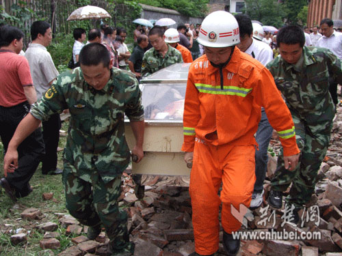 事故發(fā)生后,石首市市委書記鐘鳴、市長(zhǎng)張善彩、石首市市委常委、紀(jì)委書記張遠(yuǎn)梅、公安局長(zhǎng)唐敦武迅速趕赴現(xiàn)場(chǎng),指揮公安、消防、醫(yī)療等部門做好事故處置工作,并組織人員清理現(xiàn)場(chǎng)磚塊。經(jīng)法醫(yī)驗(yàn)尸后,2名遇難者遺體被消防官兵抬上殯棺送往殯儀館。