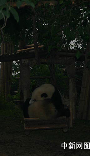 九點(diǎn)十三分,天更加黑了,記者發(fā)現(xiàn),其中一只大熊貓朝著獸社走去。飼養(yǎng)員侯桂芳告訴記者,日全食天完全變黑的瞬間,大熊貓表現(xiàn)得比較興奮,在幼稚園到處跑,估計可能是屬于比較煩躁,但是很快它們就適應(yīng)下來,那只往獸社走去的熊貓,估計是因?yàn)樗杏X天變黑了,應(yīng)該要回家了。