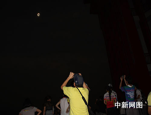 從21晚10時開始,陸續(xù)有民眾登上當(dāng)?shù)刂包c鳳凰山,等候日全食。22日7時許,記者在鳳凰山上山沿途看見數(shù)以萬計的民眾扶老攜幼,手持X光片、電焊防護(hù)鏡、黑色玻璃片、水盆等觀看工具,在鳳凰山上尋找最佳觀看位置。