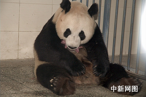 7日晨6點(diǎn)46分,“甜甜”開始出現(xiàn)產(chǎn)前征兆,8點(diǎn)13分破羊水,在經(jīng)過3個(gè)多小時(shí)的努力后生下一對(duì)健康的雙胞胎。初次當(dāng)媽媽的“甜甜”努力嘗試將寶寶叼在懷里,但小仔亂動(dòng)亂叫,很快又滑落到了地上,經(jīng)過多次努力,小仔終于在媽媽懷里安靜下來,“甜甜”用舌頭輕舔著寶寶的身體,儼然是位稱職的母親。產(chǎn)下第二仔以后,工作人員隨即將第一仔取出送往育嬰室進(jìn)行人工育幼,經(jīng)初步檢查,該寶寶是雄性,體重146.2克,各項(xiàng)身體指標(biāo)正常。