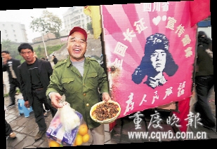 前日,劉光建離渝前往四川,人稱“活雷鋒”的他,發(fā)誓要走遍全國,用擦鞋招徒來宣傳雷鋒精神!霸谥貞c近兩月,發(fā)現重慶人個個是熱心人!眲⒐饨ǜ嬖V記者。
