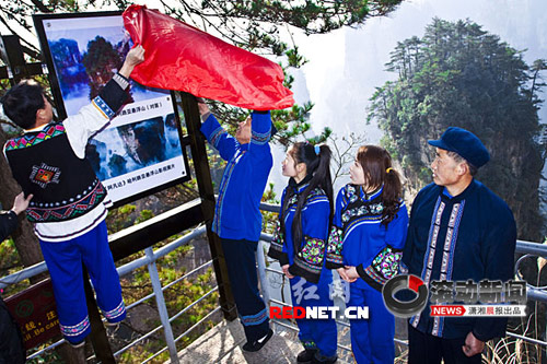 帖子描述稱,1月25日上午,張家界數(shù)名身著土家族服裝的原住居民為“南天一柱”(又名“乾坤柱”)更名標(biāo)識牌舉行了揭牌儀式。