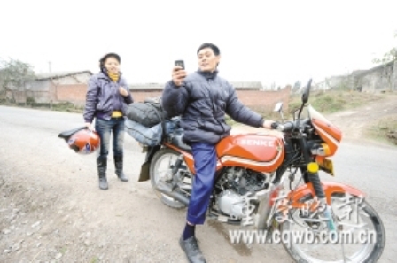 當(dāng)天上午,丁小兵買了一輛摩托車,把兩件行李綁在后座上,載著妻子踏上1400公里的回家路。為防迷路,他花1600元買了一部帶GPS衛(wèi)星導(dǎo)航功能的手機(jī)。