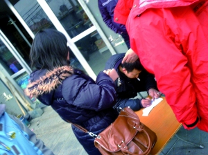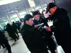 近日,六里橋長(zhǎng)途客運(yùn)站外出現(xiàn)多個(gè)“山寨版長(zhǎng)途站”,從攬客、收費(fèi)、送站均為一條龍服務(wù)。這些站點(diǎn)自制“車票”當(dāng)街發(fā)售。而長(zhǎng)途站內(nèi),“黃!痹谑燮睆d內(nèi)倒賣緊俏車票,高出正規(guī)票一倍叫賣。乘客們普遍認(rèn)為,春運(yùn)對(duì)正規(guī)客運(yùn)站壓力過大,這給票販子們漁利空間。