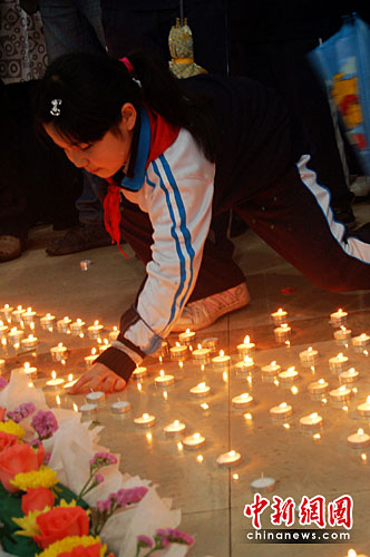 中新網武漢4月21日電 (徐金波 張芹 周剛)4月21日在青海玉樹發(fā)生地震后的第七天,武漢社會各界以各種形式沉痛悼念地震中遇難的同胞,并以各種形式伸出援助之手。
