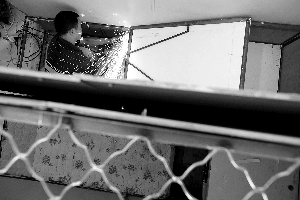 昨日8時,黃日新帶著兩名工人來到六郎莊五間樓47號,開始拆除第二代“膠囊公寓”。工人卸下“膠囊”的防盜門并一一取出防火混凝土板。