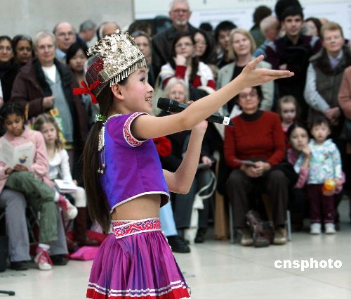 中國全國婦聯(lián)、倫敦市長辦公室和“時代中國”組委會共同舉辦的“中英婦女文化周”在倫敦開幕。當(dāng)?shù)貢r間11日下午,中國兒童中心藝術(shù)團的演員在大英博物館大廳里的表演吸引了不少當(dāng)?shù)赜^眾。中新社發(fā) 李鵬 攝