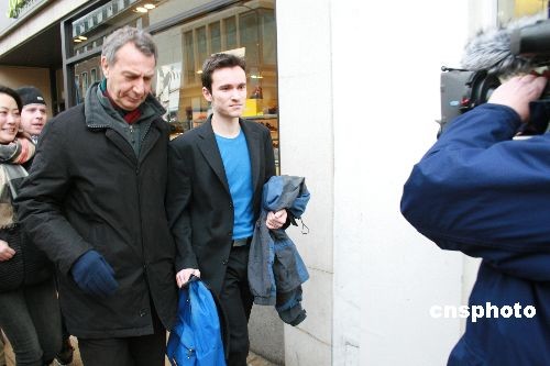 當(dāng)?shù)貢r(shí)間2月10日上午10時(shí),干擾溫家寶總理劍橋演講的德國(guó)籍學(xué)生馬丁·楊克,在劍橋地方法院出庭受審。馬丁為自己做無(wú)罪辯護(hù),法庭將于3月10日10時(shí)重新開(kāi)庭審理。圖為馬丁·楊克在初審后離開(kāi)法院。中新社發(fā) 李鵬 攝