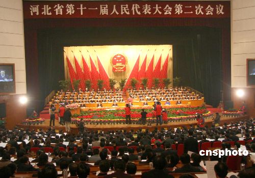 河北省第十一屆人民代表大會第二次會議1月8日在石家莊開幕,七百余名人大代表齊聚河北會堂,聽取和審議省政府工作報告。報告中提出該省今年經(jīng)濟增長9%的目標。中新社發(fā) 田張夢 攝