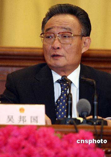 3月4日上午,十一屆全國人大二次會(huì)議預(yù)備會(huì)議在北京人民大會(huì)堂舉行。吳邦國主持會(huì)議。中新社發(fā) 任晨鳴 攝