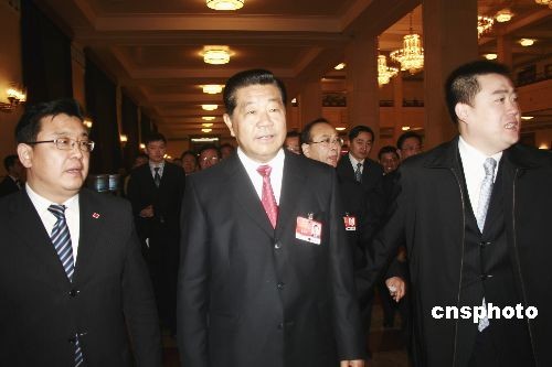 2009年3月12日9時(shí),全國(guó)政協(xié)十一屆二次會(huì)議在人民大會(huì)堂閉幕,全國(guó)政協(xié)主席賈慶林步入會(huì)場(chǎng)。中新社發(fā) 金立冬 攝