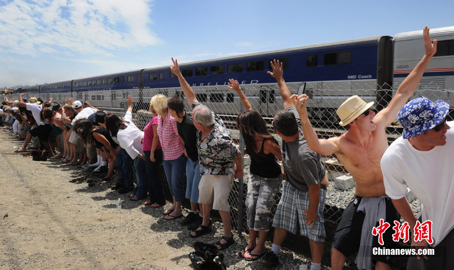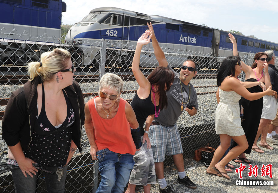 近日,美國加州南部一城市上萬人在火車鐵軌沿線站成排,背對著經(jīng)過的火車,脫褲子露出屁股。據(jù)悉,這是當?shù)匾荒暌欢鹊奶厣?/p>