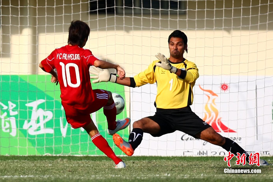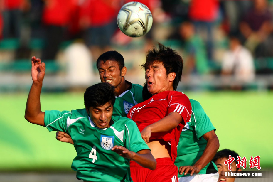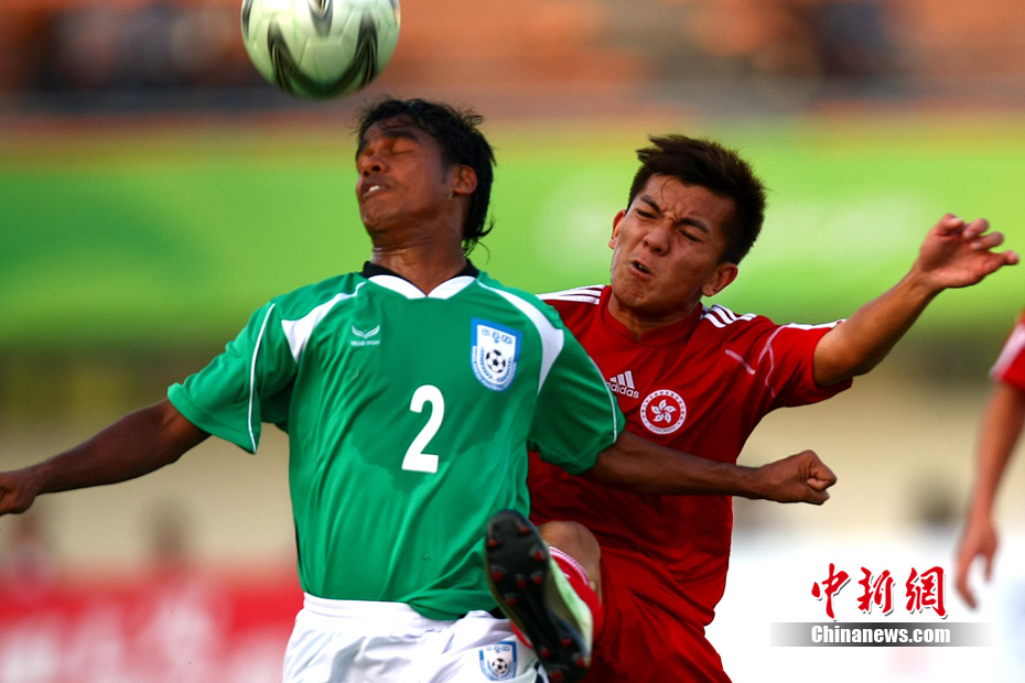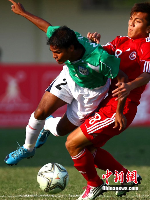 北京時(shí)間11月11日16點(diǎn)中國香港足球隊(duì)迎來小組賽第三輪的賽事,他們憑借著歐陽耀沖的梅開二度以4-1大勝孟加拉隊(duì)。中國香港隊(duì)以小組第二的身份晉級(jí)16強(qiáng)。圖為運(yùn)動(dòng)員拼搶的精彩瞬間。中新社記者 富田 攝