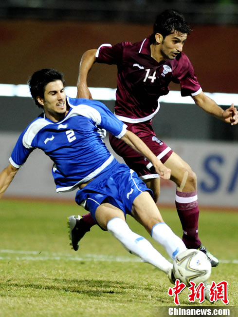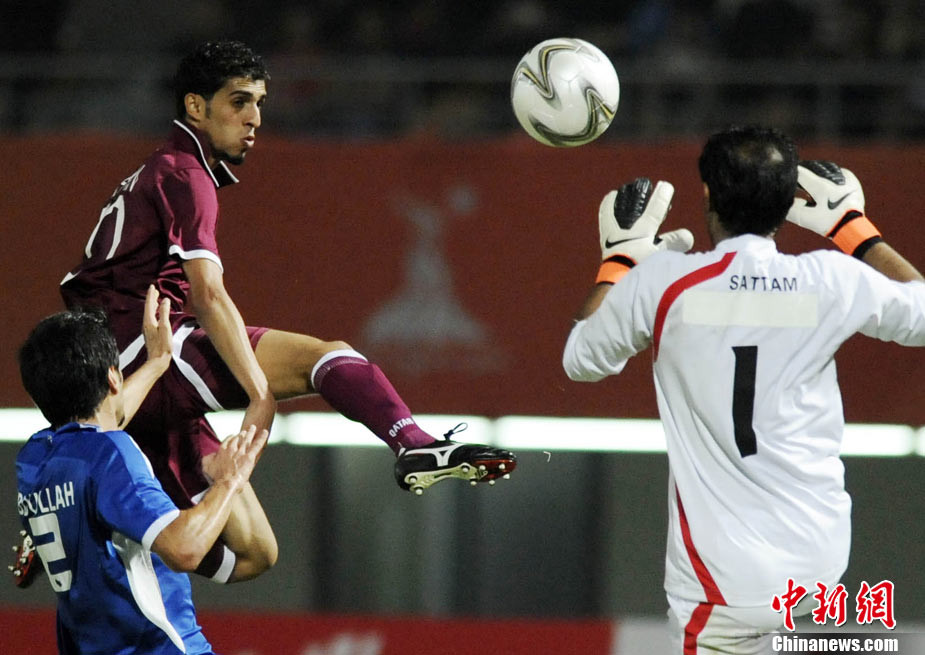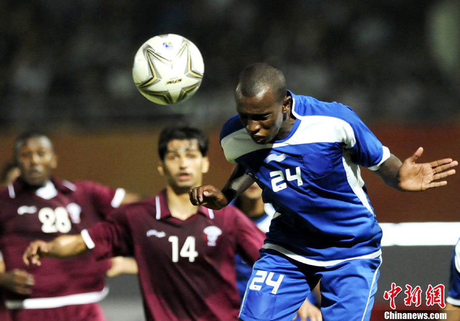 11月11日晚,廣州亞運(yùn)男足小組賽最后一輪在各大賽場打響,衛(wèi)冕冠軍卡塔爾2比0勝科威特小組出線。中新社記者 王東明 攝