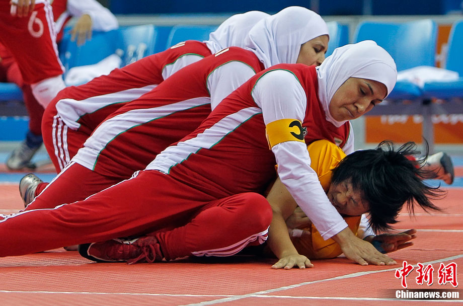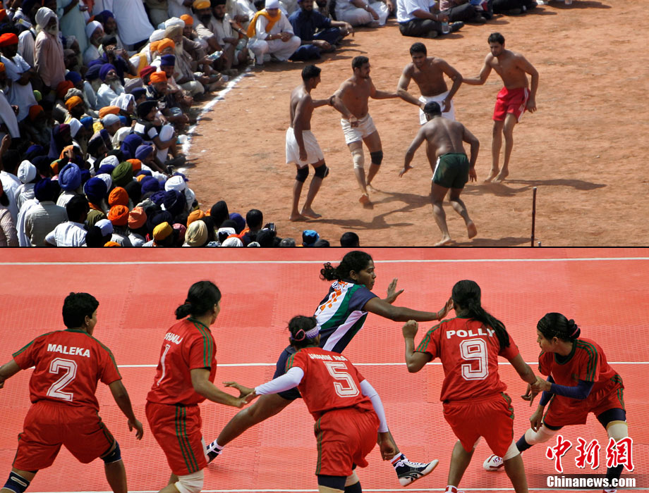 下圖:2010廣州亞運會女子卡巴迪比賽現(xiàn)場。