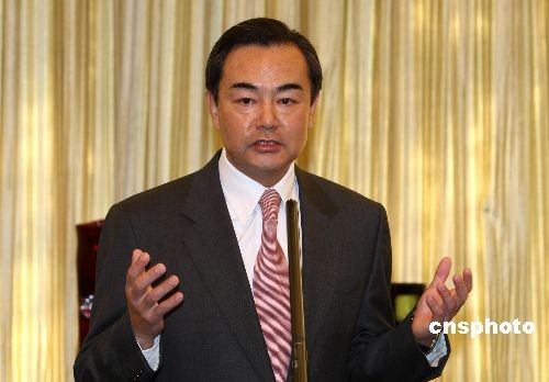 圖:國臺辦主任王毅在機(jī)場對記者發(fā)表講話