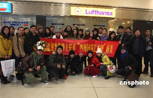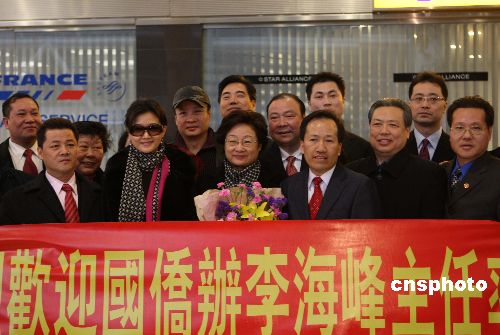 1月28日,中國國務(wù)院僑辦主任李海峰率領(lǐng)“文化中國·四海同春”藝術(shù)團(tuán)一行40人抵達(dá)紐約,開始在美國為期19天的藝術(shù)之旅,與美國華人華僑同慶新春。著名歌唱家宋祖英、閻維文等隨團(tuán)抵達(dá)。中國駐紐約總領(lǐng)事彭克玉、美東華人社團(tuán)聯(lián)合總會共同主席梁冠軍和陳清泉、秘書長林學(xué)文,美國福建同鄉(xiāng)會代主席鄭棋,美國福建公所代主席鄭時(shí)甘,美國上海聯(lián)誼會會長承立平,崇正會主席朱天長等紐約當(dāng)?shù)貎S領(lǐng)及各客屬僑團(tuán)負(fù)責(zé)人等,均到機(jī)場迎接李海峰一行。中新社發(fā) 魏晞 攝