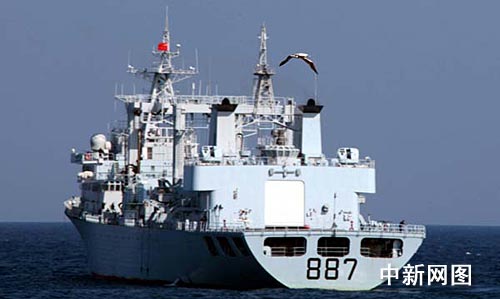 圖:導(dǎo)彈驅(qū)逐艦與綜合補(bǔ)給艦在海上補(bǔ)給——中新網(wǎng)