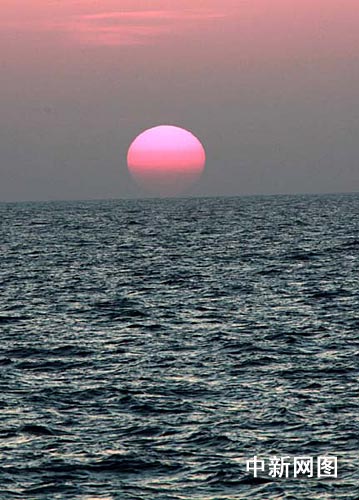 圖:亞丁灣海上日落時一輪紅日絢麗多彩——中新網(wǎng)