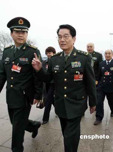 3月12日,全國(guó)政協(xié)十一屆二次會(huì)議舉行閉幕大會(huì),解放軍委員步入會(huì)場(chǎng)。中新社發(fā) 傅丹丹 攝