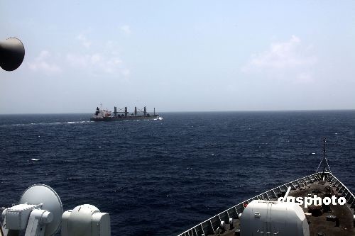2009年4月11日,中國(guó)海軍首批護(hù)航編隊(duì)在亞丁灣開(kāi)始執(zhí)行第40批商船護(hù)航任務(wù),“?凇碧(hào)導(dǎo)彈驅(qū)逐艦單獨(dú)伴隨護(hù)航一艘晚到的香港商船“明達(dá)”號(hào),從曼德海峽東口朝亞丁灣東部海域進(jìn)發(fā)。當(dāng)天早些時(shí)候,“武漢”艦已伴隨護(hù)航5艘商船先行。中新社發(fā) 孫自法 攝