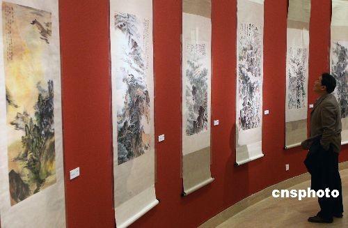 紀(jì)念國畫大師陸儼少誕辰100周年藝術(shù)展在北京開幕。10月31日,為紀(jì)念中國已故國畫大師陸儼少先生誕辰100周年,緬懷這位藝術(shù)大師,展示大師的藝術(shù)成就,由浙江省人民政府、中國文學(xué)藝術(shù)界聯(lián)合會主辦的“陸儼少先生誕辰100周年藝術(shù)展暨《陸儼少全集》首發(fā)式”,歷經(jīng)上海、南京巡回展覽后,在北京中國美術(shù)館開幕。中新社發(fā) 錢興強(qiáng) 攝