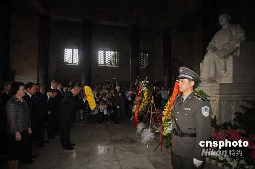 圖:吳伯雄向?qū)O中山像獻花