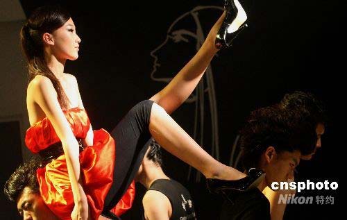 圖:模特行為藝術(shù)展示高跟鞋藝術(shù)秀