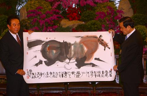 陳云林向馬英九贈送禮品。新華社記者 邢廣利 攝