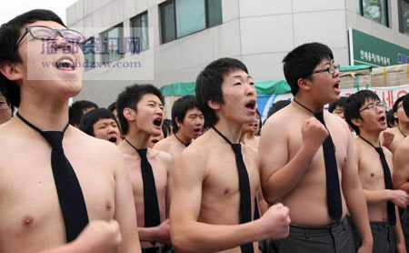 低年級(jí)男生赤膊為前輩壯行。(圖片來源:海峽都市報(bào))