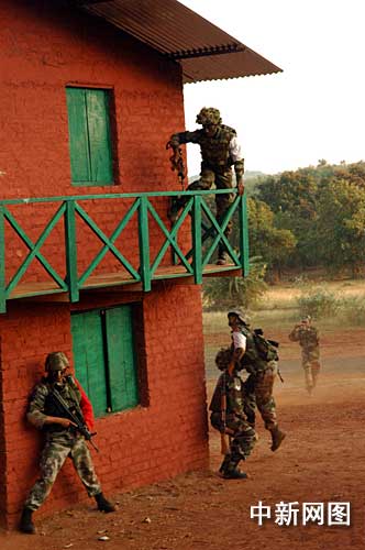正在印度貝爾高姆舉行的“攜手—二00八”中印陸軍反恐聯(lián)合訓(xùn)練十一日進(jìn)入第三階段。中新社記者 孫宇挺 攝