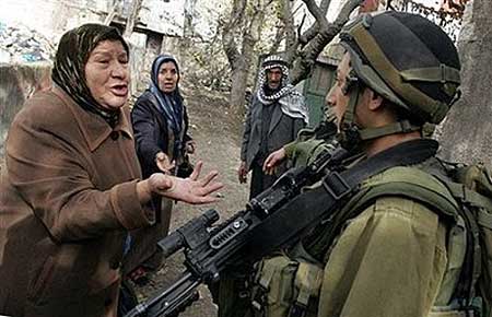 圖:巴勒斯坦婦女與以軍士兵交涉——中新網(wǎng)
