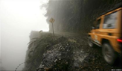 驚險(xiǎn)度:地球上最危險(xiǎn)的路,也被稱為“死亡之路” 。貫通40英里山路,最窄的地方只有10英尺,1000英尺的路是垂直沖入下面的熱帶雨林,而且還沒(méi)有護(hù)欄。