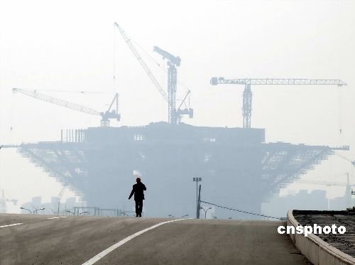 1月4日,2010年上海世博會中國館日前實現主體結構封頂。作為上海世博會五大永久性建筑之一,中國館結構封頂標志著世博會園區(qū)建設正在順利推進。中新社發(fā) 井韋 攝