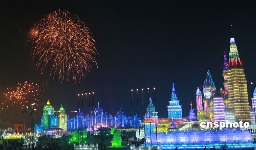 2009年1月5日,由國家旅游局、黑龍江省人民政府、哈爾濱市人民政府主辦的第25屆中國·哈爾濱國際冰雪節(jié)在哈爾濱舉行開幕式。本屆冰雪節(jié)以“激情大冬會、快樂冰雪游”為主題,包括冰雪藝術、冰雪體育、冰雪文化、冰雪經貿、冰雪旅游等百余項相關活動。中新社發(fā) 王忠言 攝