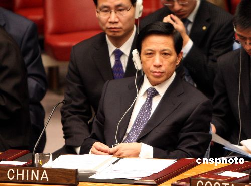 聯(lián)合國安理會(huì)1月6日就加沙局勢舉行緊急會(huì)議。中國常駐聯(lián)合國代表張業(yè)遂在會(huì)上發(fā)言,呼吁安理會(huì)盡快行動(dòng),通過一項(xiàng)決議,促成以巴立即;稹0ò屠账固姑褡鍣(quán)力機(jī)構(gòu)主席阿巴斯、美國國務(wù)卿賴斯、英國外相米利班德,以及沙特、埃及、約旦、黎巴嫩、摩洛哥、卡塔爾、敘利亞等阿拉伯國家外長和安理會(huì)理事國常駐聯(lián)合國代表都出席會(huì)議。中新社發(fā) 李靜 攝