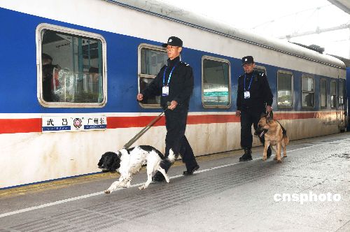 圖:廣州火車站搜爆犬上崗保春運——中新網(wǎng)