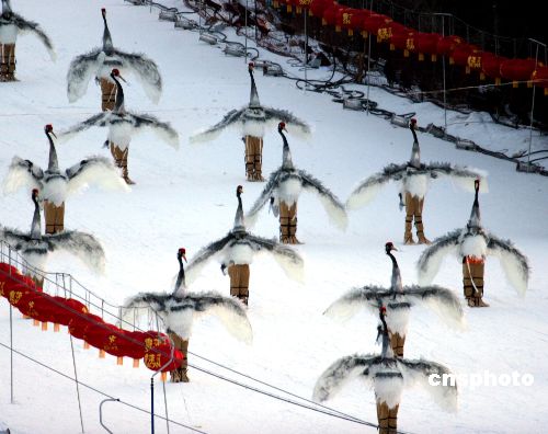 2009中國沈陽國際冰雪節(jié)準(zhǔn)備就緒,將于1月11日正式開幕。在開幕式預(yù)演上,幾百只由學(xué)生扮演的仙鶴成為最大亮點(diǎn),格外引人注目。