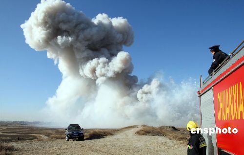 1月14日,北京警方在大興對(duì)收繳的3000多箱、價(jià)值100多萬(wàn)元的劣質(zhì)煙花爆竹進(jìn)行集中銷(xiāo)毀。 中新社發(fā) 杜洋 攝