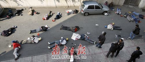 該團伙十分猖獗,警方負責人說:“警方多次接到群眾舉報,經(jīng)過一周多的預(yù)伏和拍攝,發(fā)現(xiàn)這個扒搶團伙約有20人,假扮成摩的‘搭客佬’,盤踞在出站口處扒搶乘客,偷竊不成就搶!”