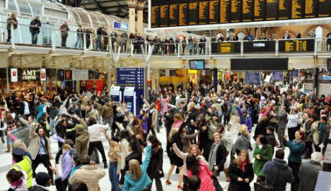組圖:400名乘客英國(guó)火車站大跳“雷人舞”(5)——中新網(wǎng)