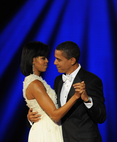 當(dāng)?shù)貢r(shí)間1月20日,奧巴馬在美國(guó)首都華盛頓的國(guó)會(huì)大廈前宣誓就職,成為美國(guó)第四十四任總統(tǒng)。當(dāng)日奧巴馬夫婦在華盛頓特區(qū)舉辦的一場(chǎng)舞會(huì)上露面,兩人還在舞會(huì)上深情款款的共舞一曲。