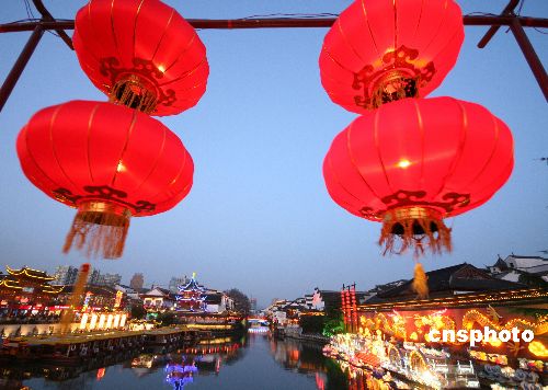 1月23日晚,2009年的中國南京夫子廟——秦淮河風(fēng)光帶國際燈會開始亮燈。本屆燈會從1月26日正式開始,到2月12日結(jié)束,規(guī)模和數(shù)量都超過往屆。屆時,50組大中型燈組、40萬盞手工扎制的花燈將把夫子廟景區(qū)裝點(diǎn)成燈的世界、花的海洋。