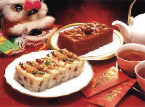 新加坡的年夜飯是千家萬戶都舉家圍坐,端出大盆年糕,大吃特吃。過年時,新加坡人愛吃油炸糯米和紅糖做成的甜年糕。當?shù)厝艘浴澳旮狻笔恰澳旮摺敝,為新年祈禱祝福。