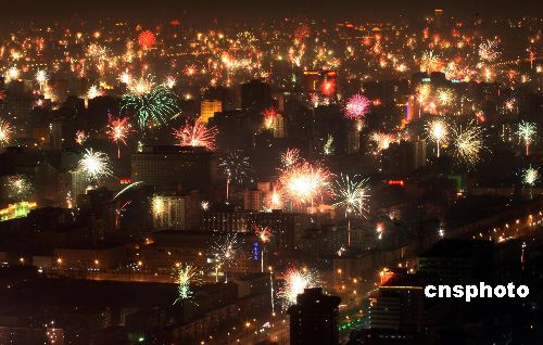 圖:北京在絢麗的煙花映襯下成為一片歡樂(lè)的海洋——中新網(wǎng)