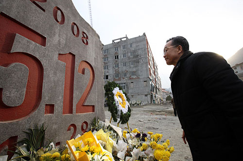 1月24日至25日,中共中央政治局常委、國(guó)務(wù)院總理溫家寶來(lái)到四川受災(zāi)最為嚴(yán)重的北川、德陽(yáng)、汶川等地,和災(zāi)區(qū)人民一起過(guò)年。這是1月24日,溫家寶專程來(lái)到北川縣城遺址,在“5·12”地震紀(jì)念碑前向大地震中遇難的同胞們獻(xiàn)花、默哀。作者:姚大偉