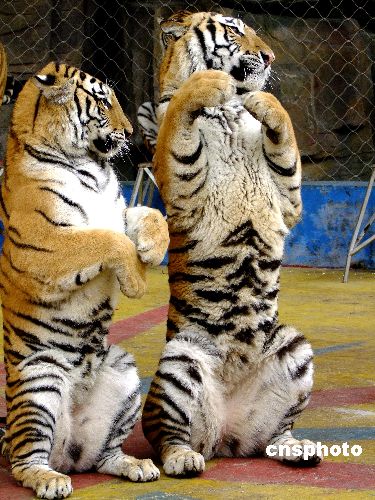 圖:廣西南寧老虎獅子為游人作揖拜年(2)——中新網(wǎng)