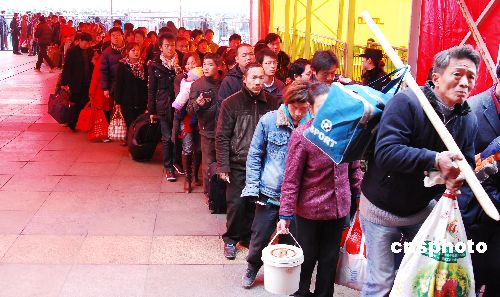 大批返程農(nóng)民工正在九江火車站排隊(duì)進(jìn)站。
